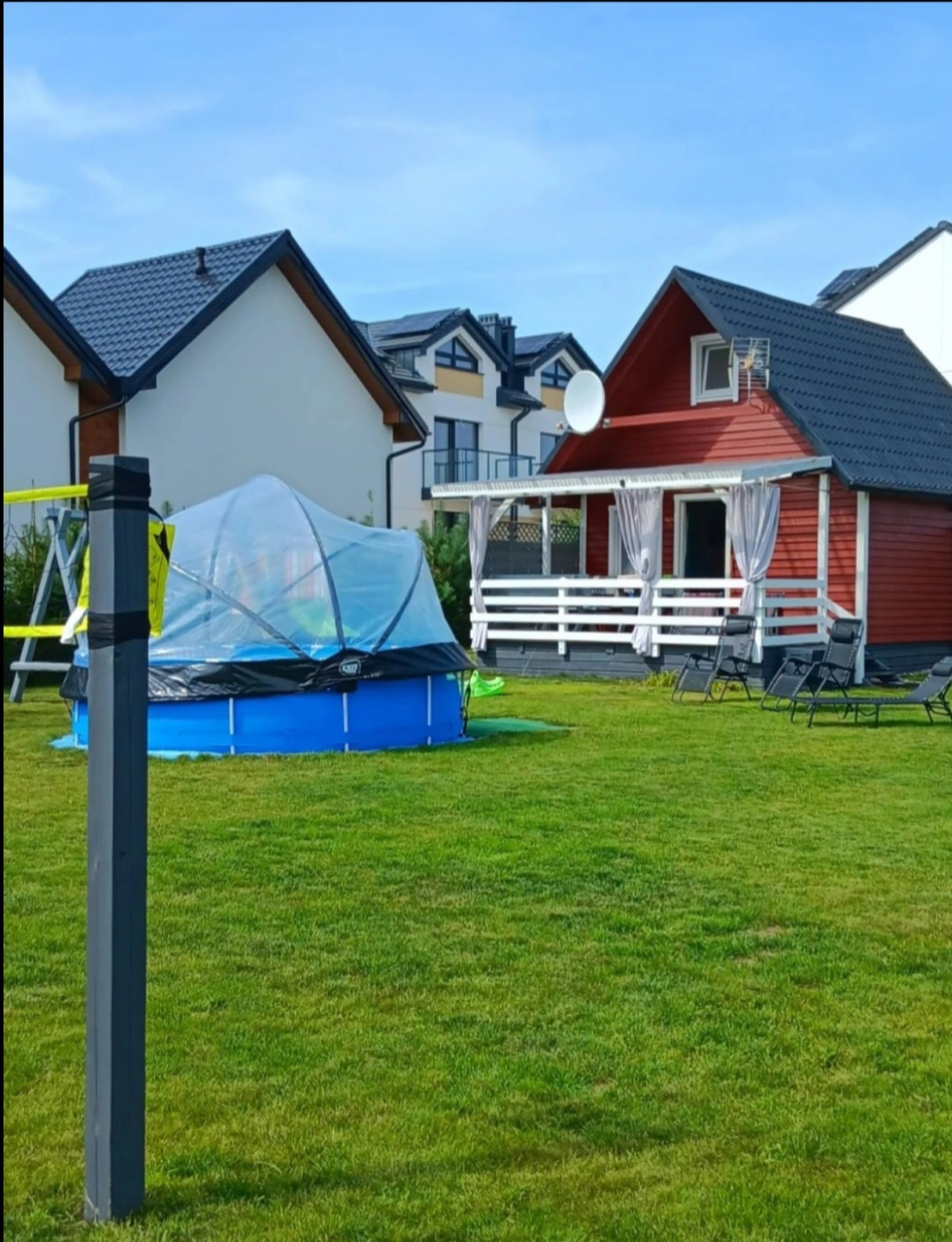 Jeden domek na ogrodzonej działce . Akceptujemy zwierzęta domowe .